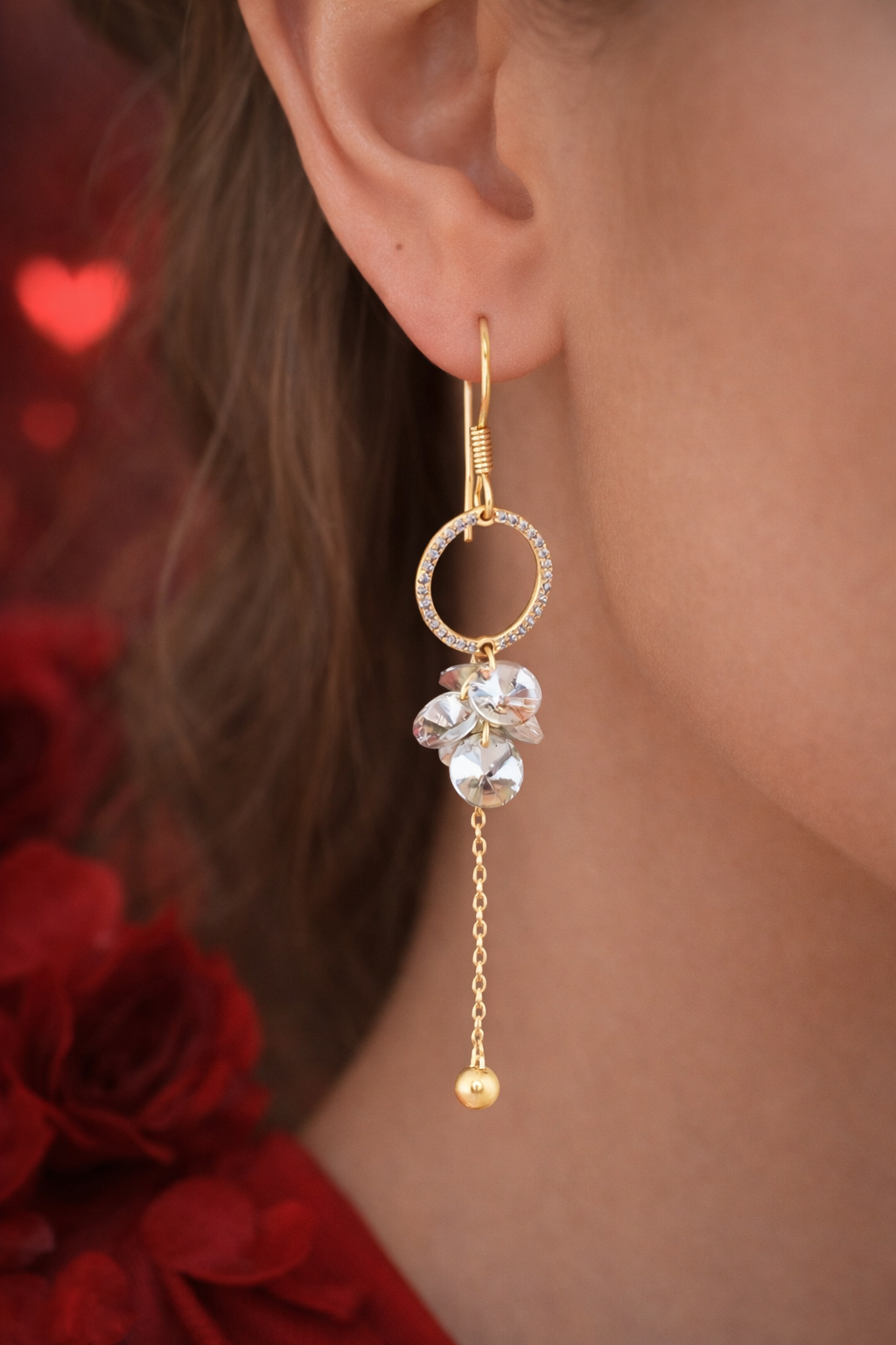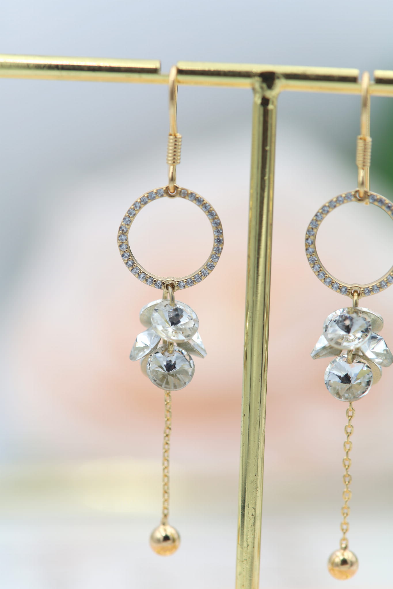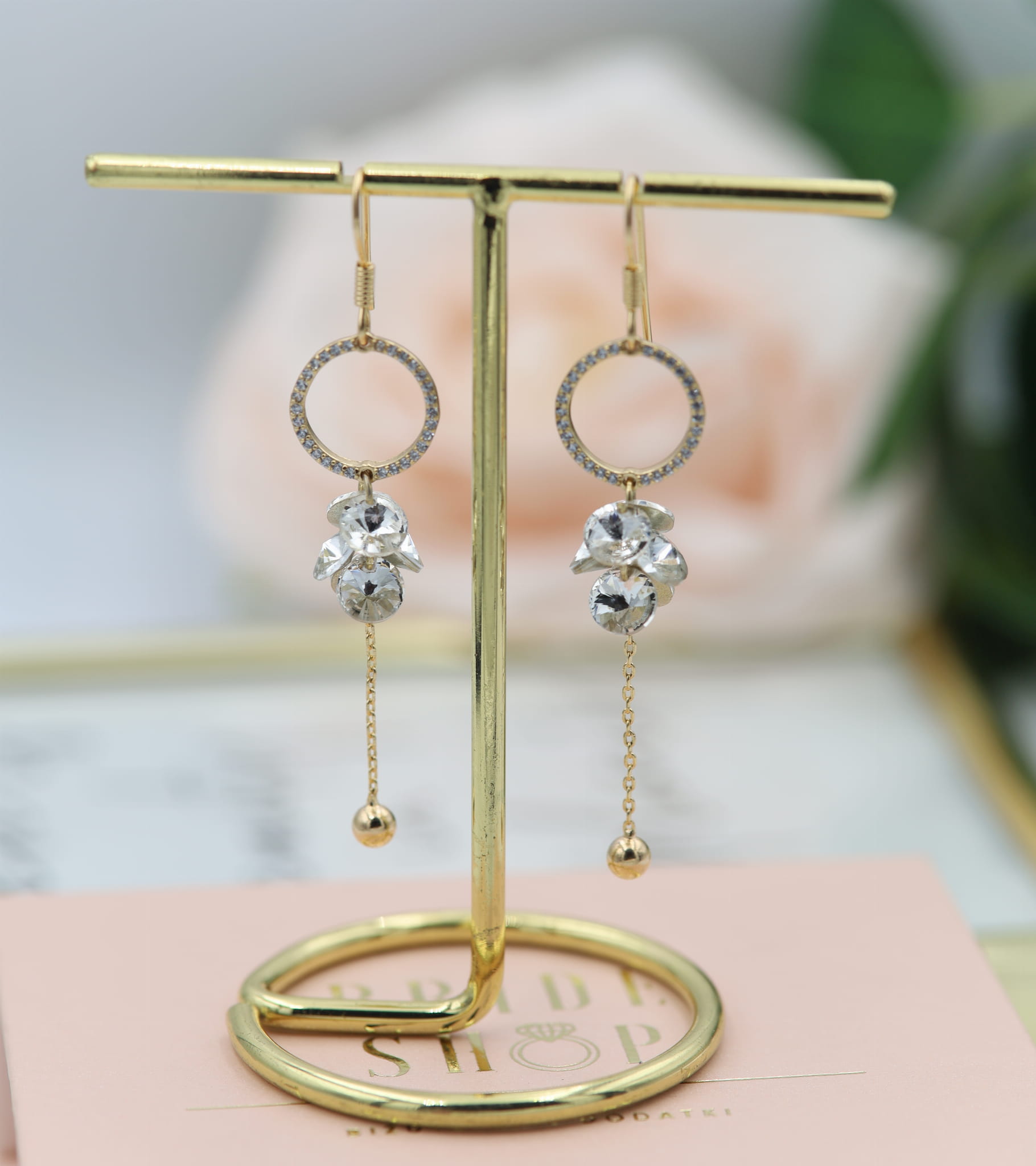 Pozłacane, wiszące kolczyki to zarówno idealna biżuteria ślubna, jak i okazjonalna.