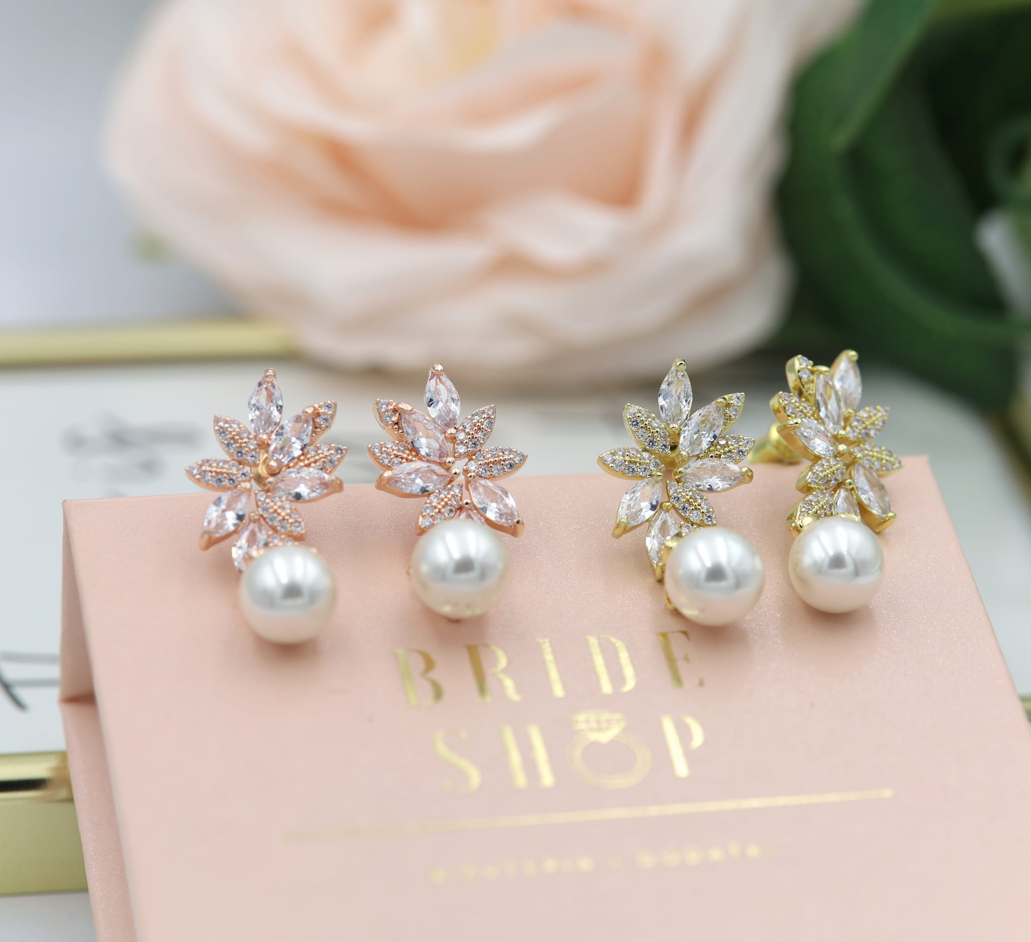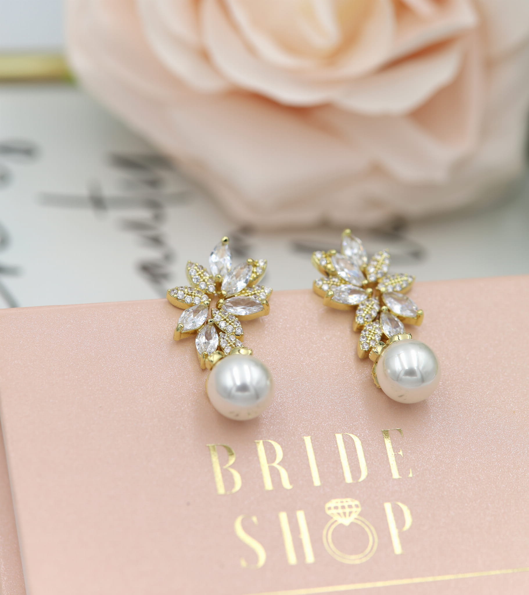 Kolczyki zapakowane są w eleganckie pudełko z logo marki Bride Shop, dzięki czemu biżuteria jest idealnym prezentem dla bliskiej osoby.