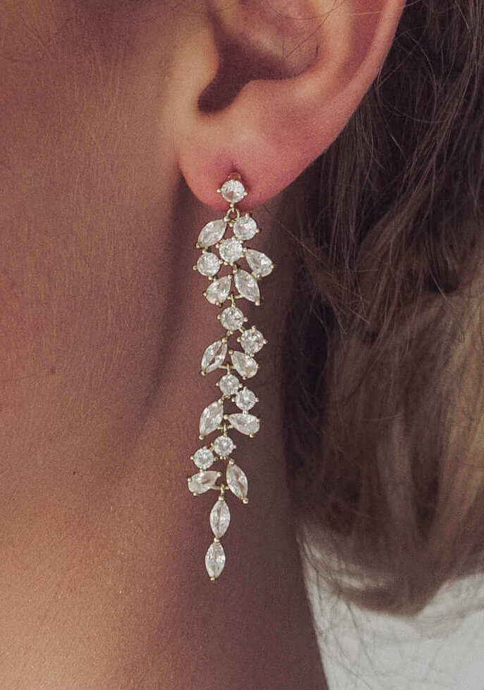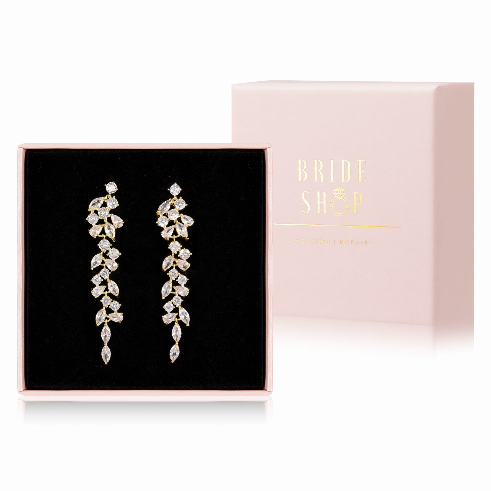 Delikatny wzór kolczyków stworzony na kształt kwiatów i listków sprawia, że biżuteria ta stworzy piękną stylizację zarówno z sukniami w stylu boho, jak i będzie doskonałym dodatkiem do bogato zdobionej sukni ślubnej.