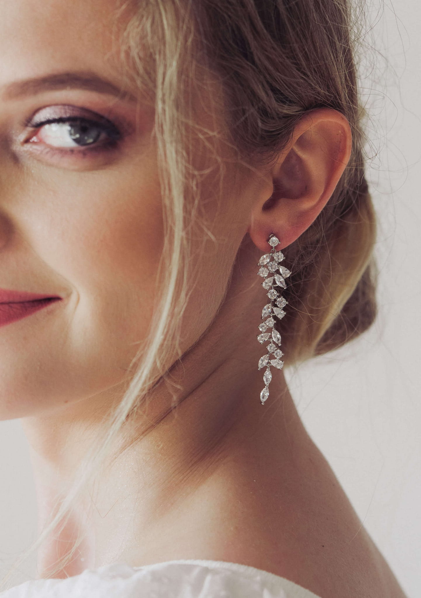 Delikatny wzór kolczyków stworzony na kształt kwiatów i listków sprawia, że biżuteria ta stworzy piękną stylizację zarówno z sukniami w stylu boho, jak i będzie doskonałym dodatkiem do bogato zdobionej sukni ślubnej.