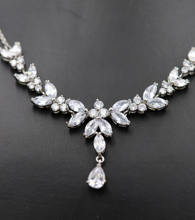 Wysadzany cyrkoniami, idealny do sukni ślubnej z wyeksponowanym dekoltem.